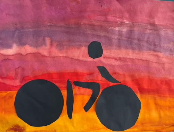 Some of our Kiwi Hub students made this art based on the Winter Olympics. They chose the opposite colours to cold as they wanted a warm feel to contrast with the sport. The black icons were based on the actual ones used to represent the Winter Olympics. Dye was used for the background and the colours were blended light to dark.