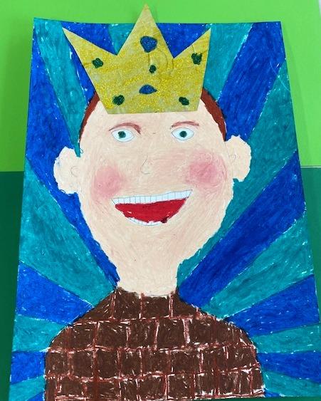 Takahe's spectacular 'Royal Self Portraits' involved blending colours for the skin tone. The colour palette included white, black, brown, yellow, beige and gold. By looking at our reflection we practiced guided drawing to establish the facial features. The background colours on the image were warm or cold, with radiating lines to the edge of the parchment paper. The students then selected a crown template that they traced, cut and glued to their self portraits. The final step was painting coloured glitter to the crowns, creating a unique portrait, to express individuality and the complexity of identity. Can you guess the Takahe boys and girls shown in the portraits displayed?