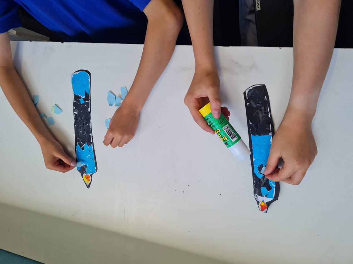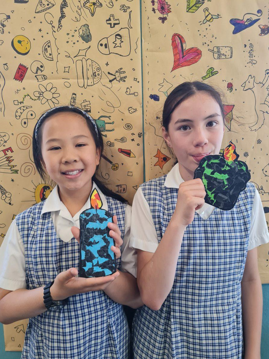 This project provided a wonderful opportunity for quiet reflection as each student drew a candle and thoughtfully wrote the name of a loved one they wished to honour and keep close in their hearts. The names were then reverently covered with gorgeous, layered collage, transforming the simple drawing into a vibrant and unique piece of art.