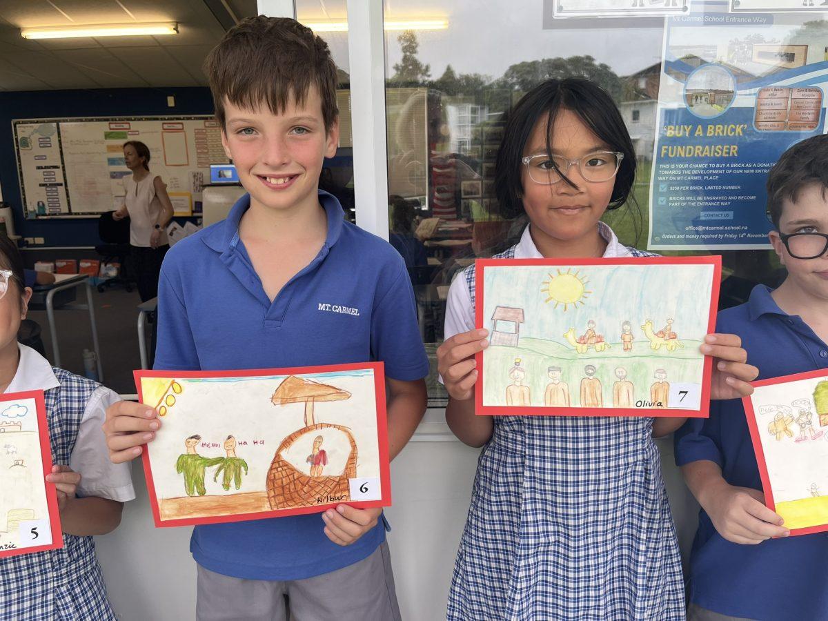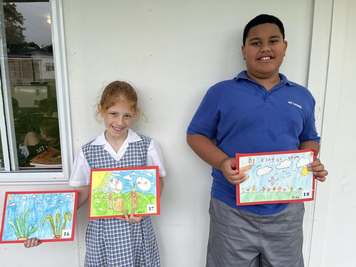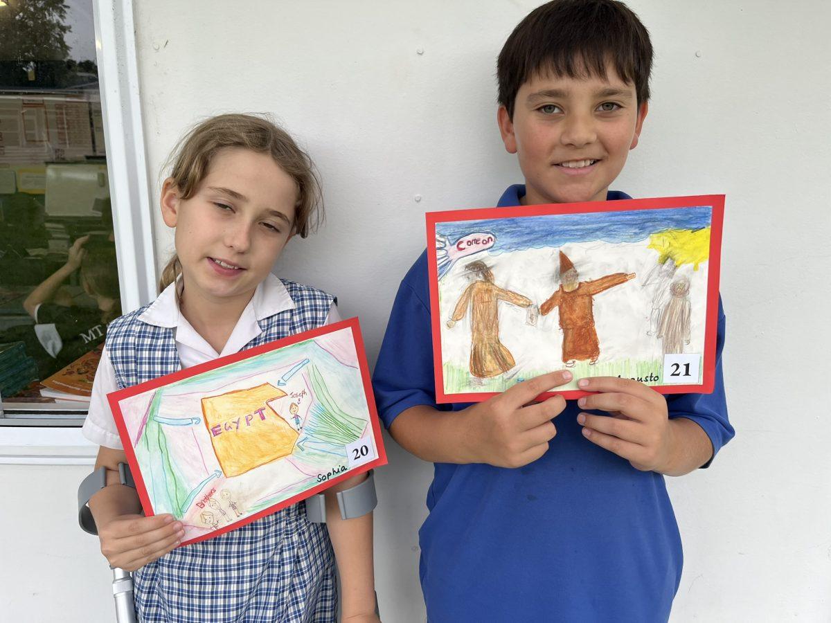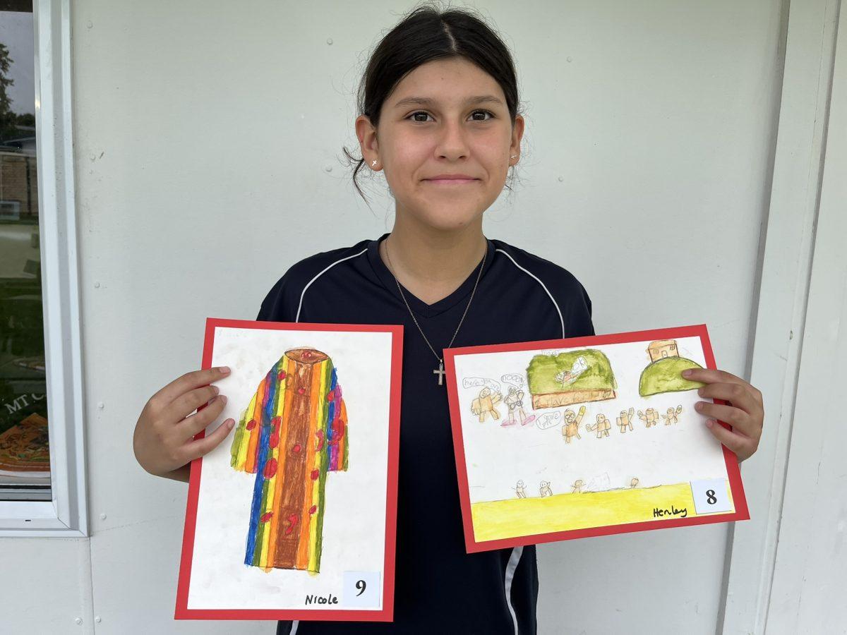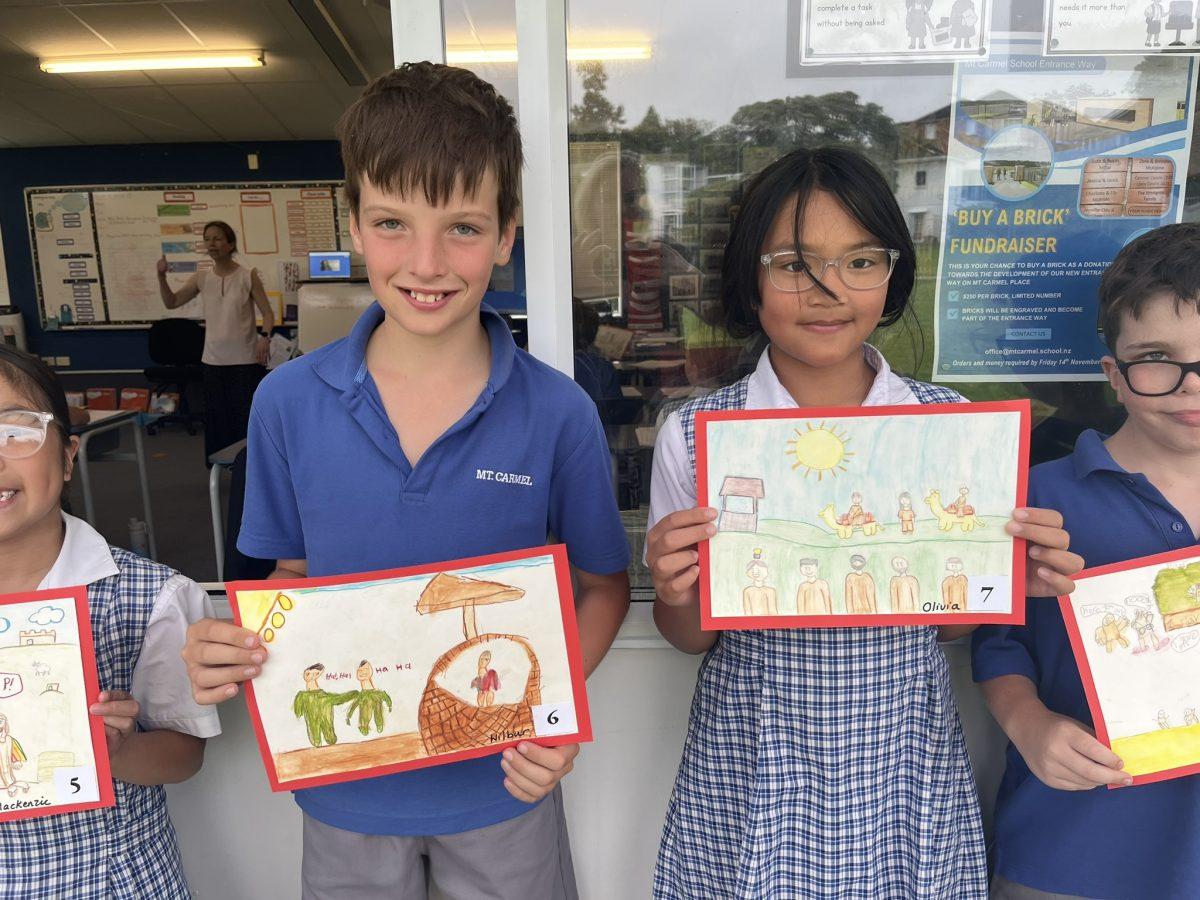 During the Te Rongopai -Good News theme in RE, Tui class explored ancient stories from the Old Testament that Jesus would have learnt as a child. These special stories show us how to be in good relationships with God, ourselves and other people. One of the stories they studied was Joseph and His Brothers. Through this story, the students explored the concepts of peace, jealousy and hatred, and identified how these were shown in the story. They also reflected on how they can show forgiveness themselves and make peace when encountering difficult situations in their lives today. They are reminded that God is always there to support them. To supplement their learning, each member of Tui class was given a scene from the story to illustrate using watercolour pencils. Collectively, their pictures tell the story of Joseph and His Brothers for you to enjoy.