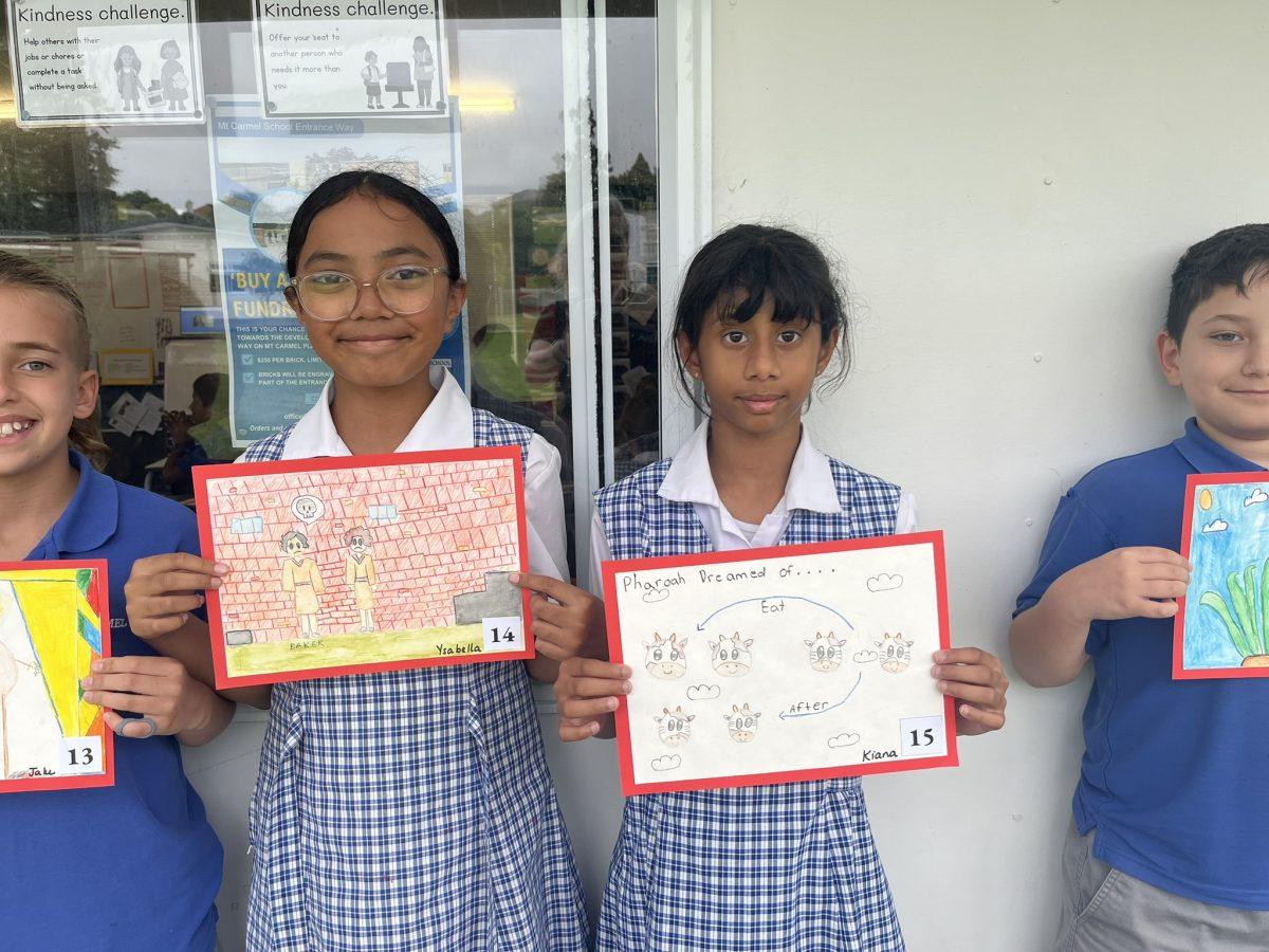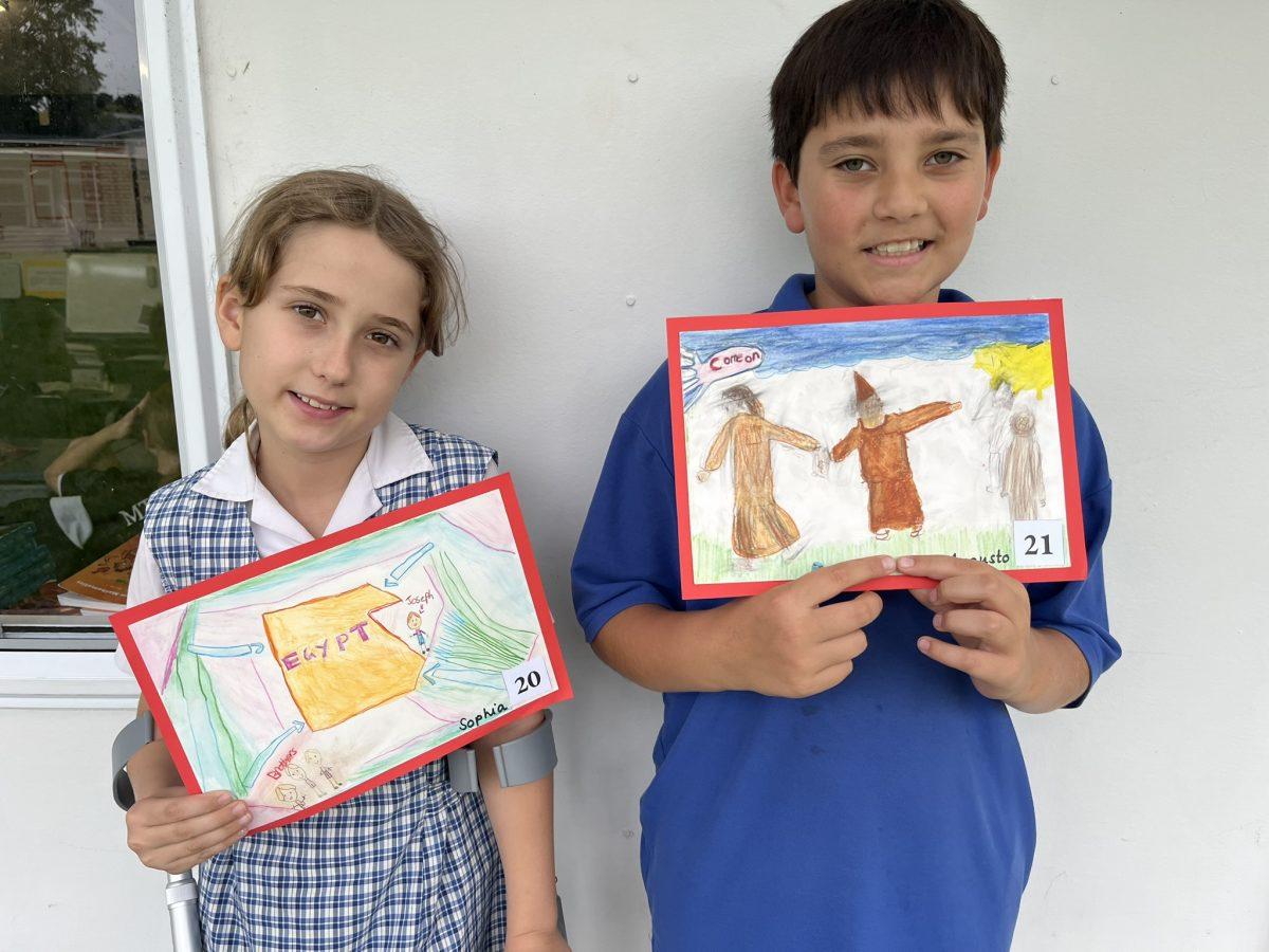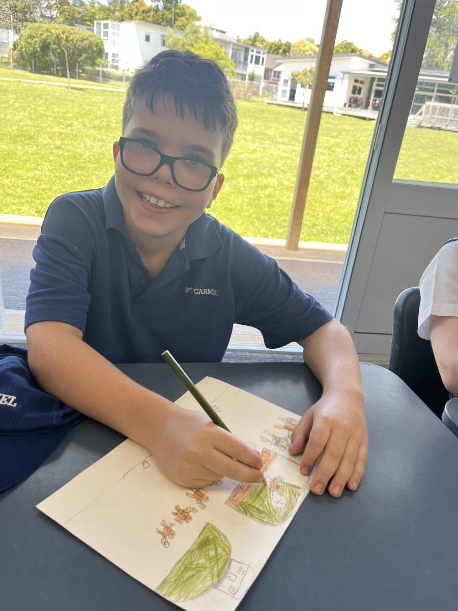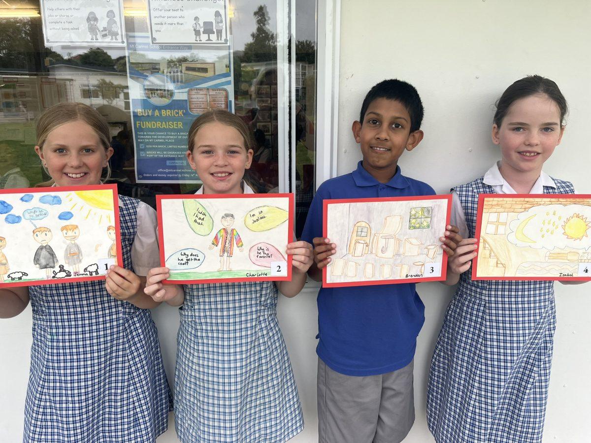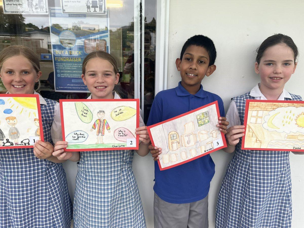 During the Te Rongopai -Good News theme in RE, Tui class explored ancient stories from the Old Testament that Jesus would have learnt as a child. These special stories show us how to be in good relationships with God, ourselves and other people. One of the stories they studied was Joseph and His Brothers. Through this story, the students explored the concepts of peace, jealousy and hatred, and identified how these were shown in the story. They also reflected on how they can show forgiveness themselves and make peace when encountering difficult situations in their lives today. They are reminded that God is always there to support them. To supplement their learning, each member of Tui class was given a scene from the story to illustrate using watercolour pencils. Collectively, their pictures tell the story of Joseph and His Brothers for you to enjoy.