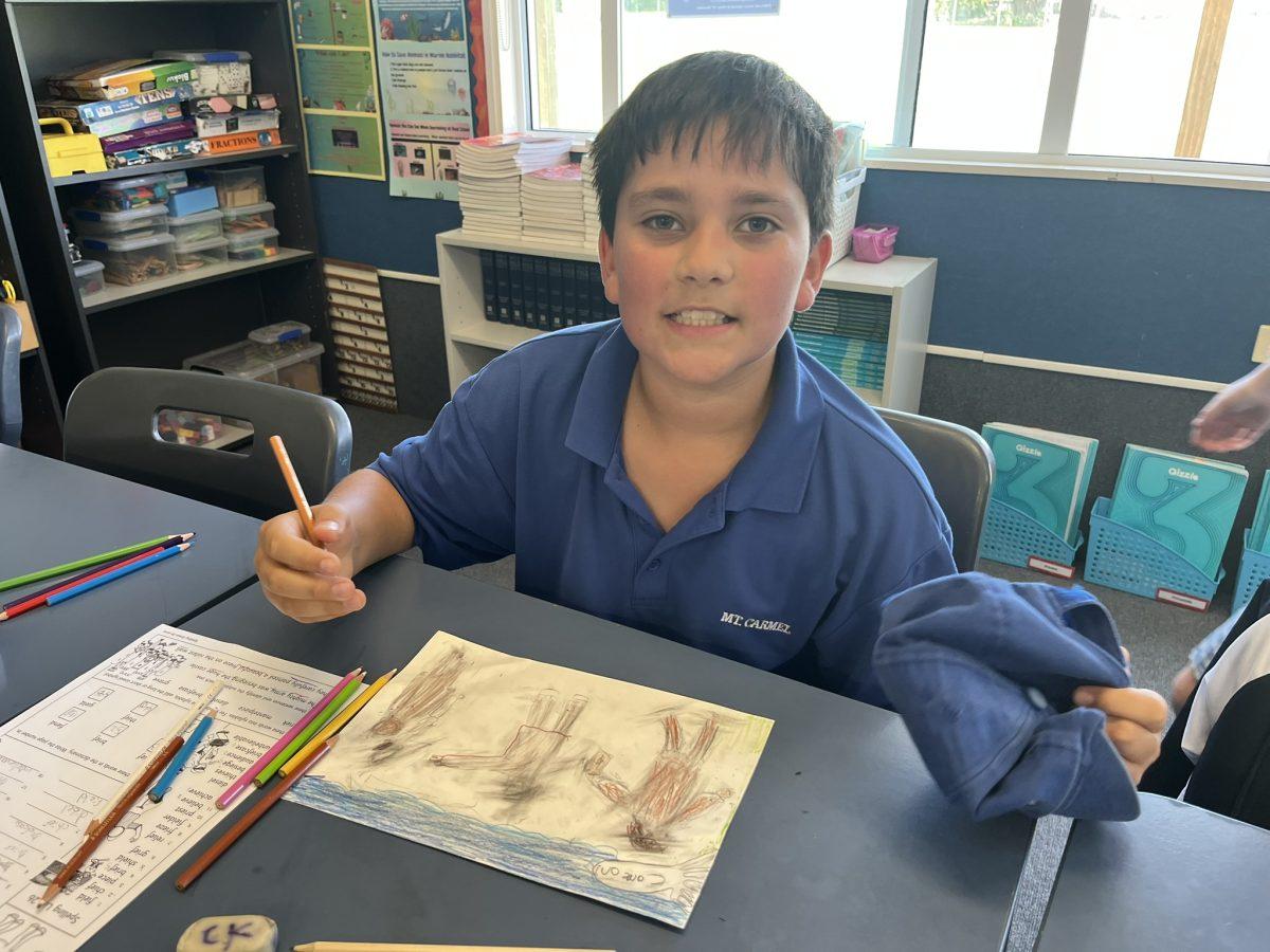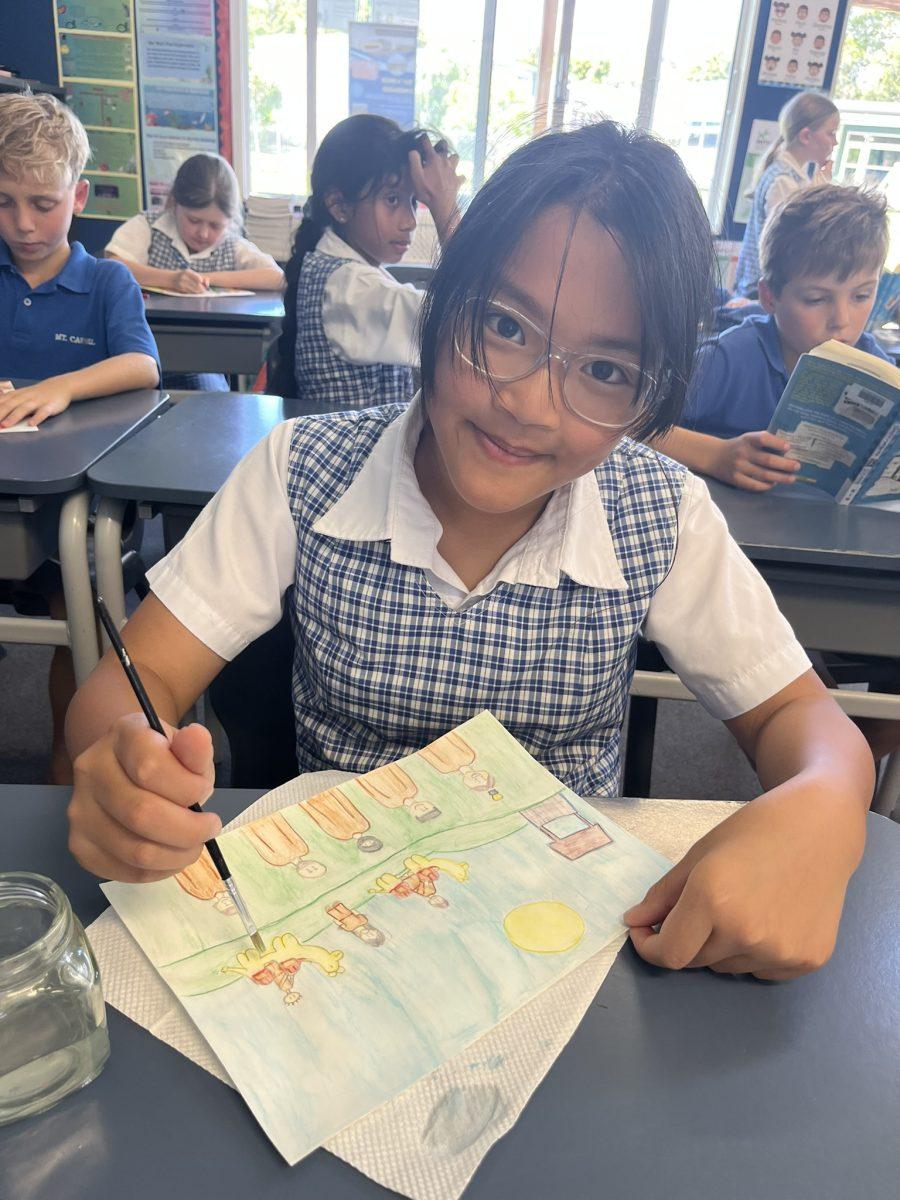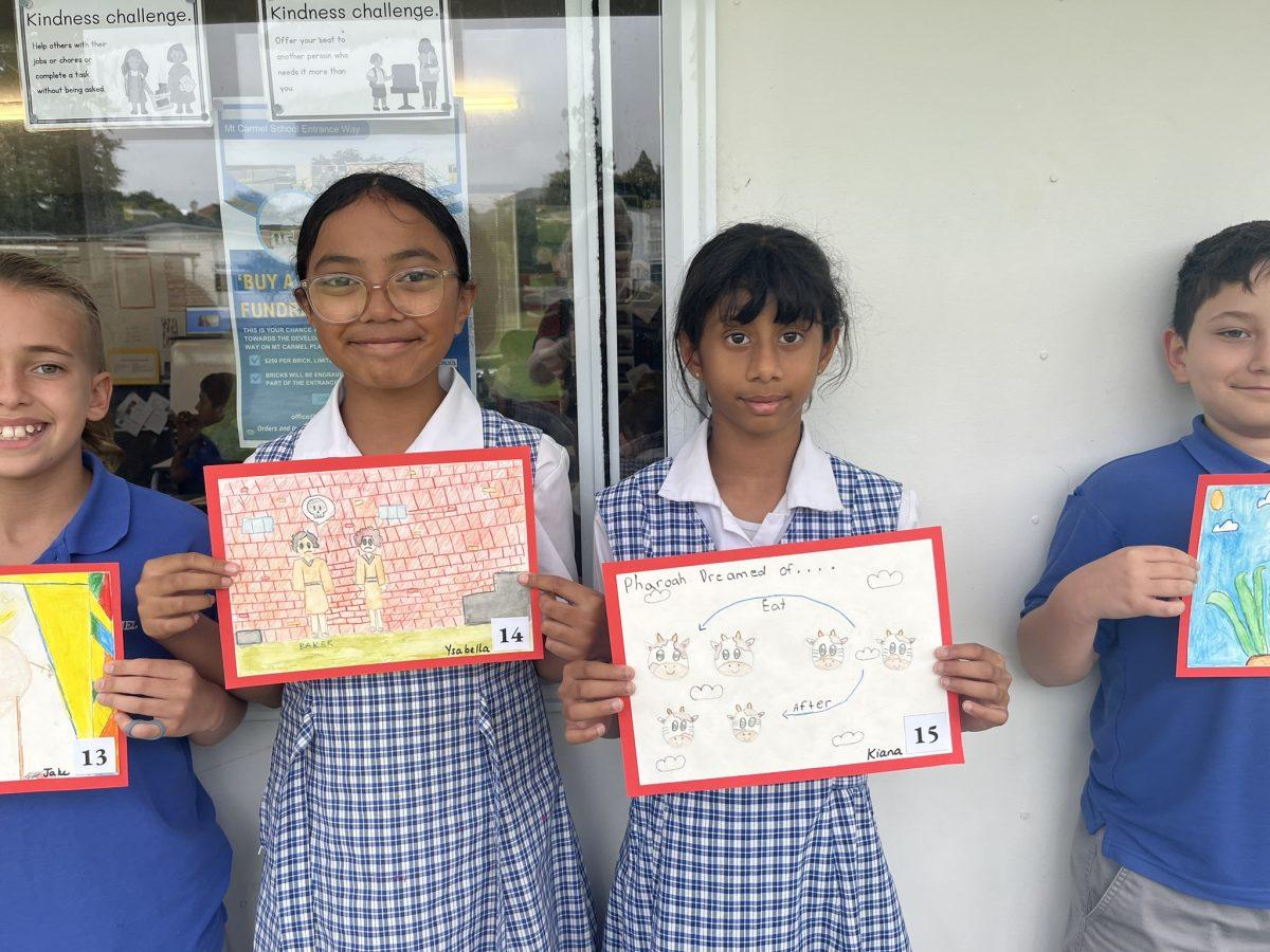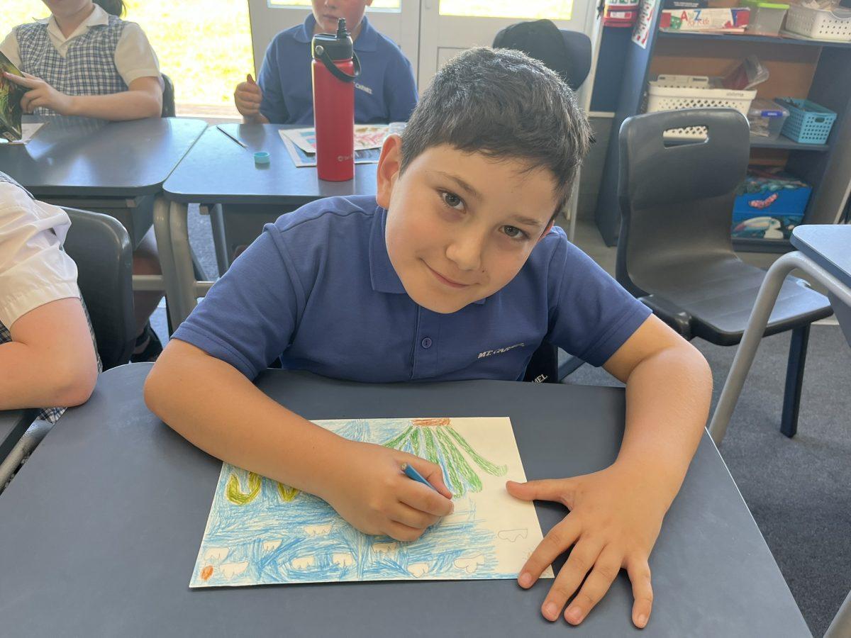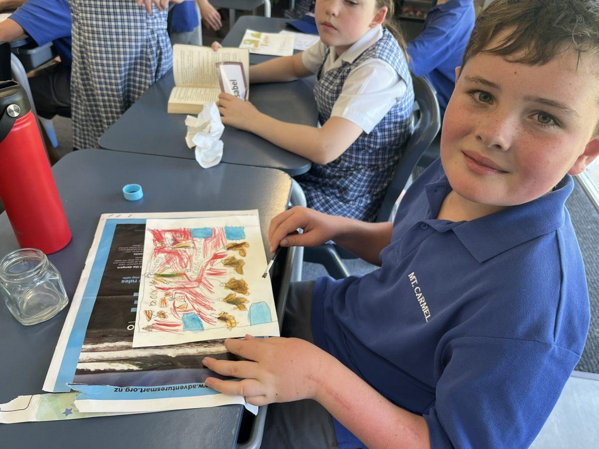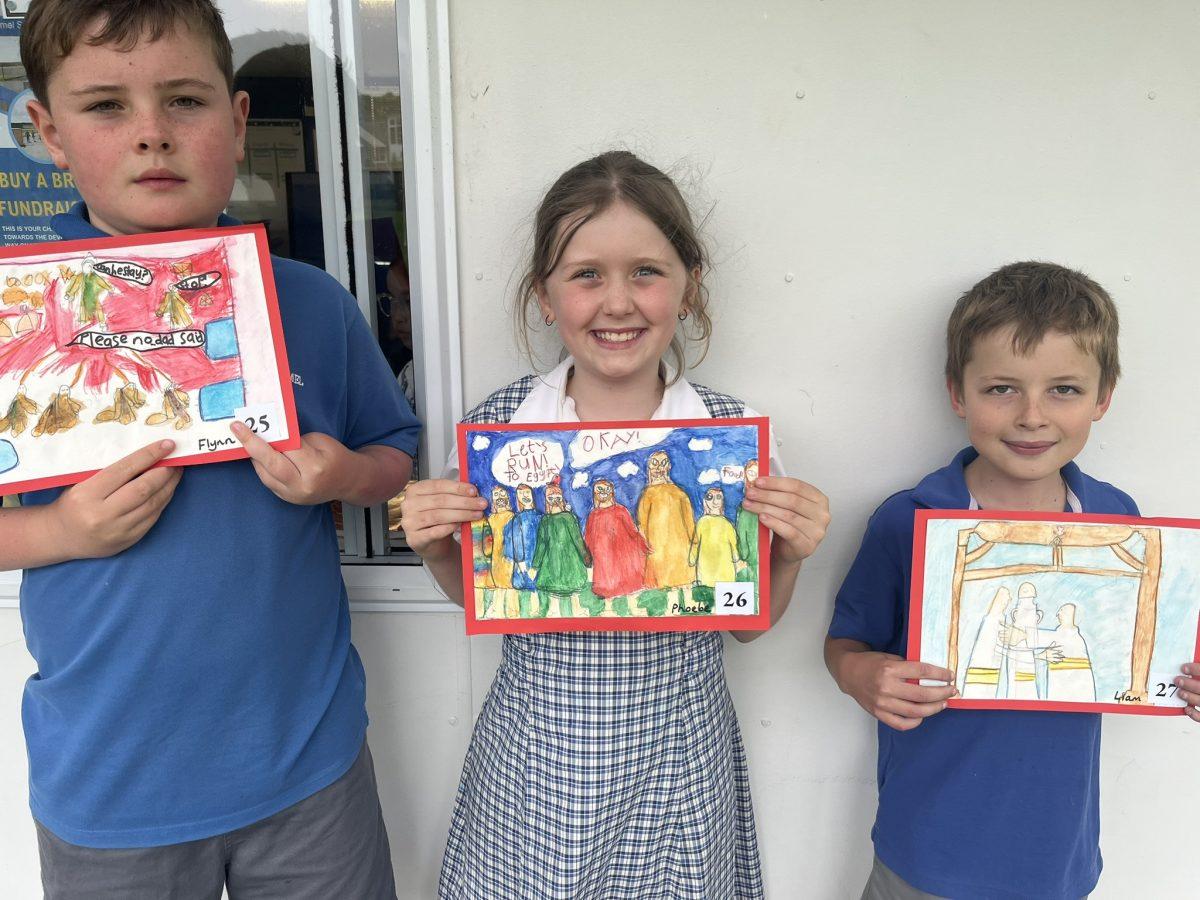 During the Te Rongopai -Good News theme in RE, Tui class explored ancient stories from the Old Testament that Jesus would have learnt as a child. These special stories show us how to be in good relationships with God, ourselves and other people. One of the stories they studied was Joseph and His Brothers. Through this story, the students explored the concepts of peace, jealousy and hatred, and identified how these were shown in the story. They also reflected on how they can show forgiveness themselves and make peace when encountering difficult situations in their lives today. They are reminded that God is always there to support them. To supplement their learning, each member of Tui class was given a scene from the story to illustrate using watercolour pencils. Collectively, their pictures tell the story of Joseph and His Brothers for you to enjoy.