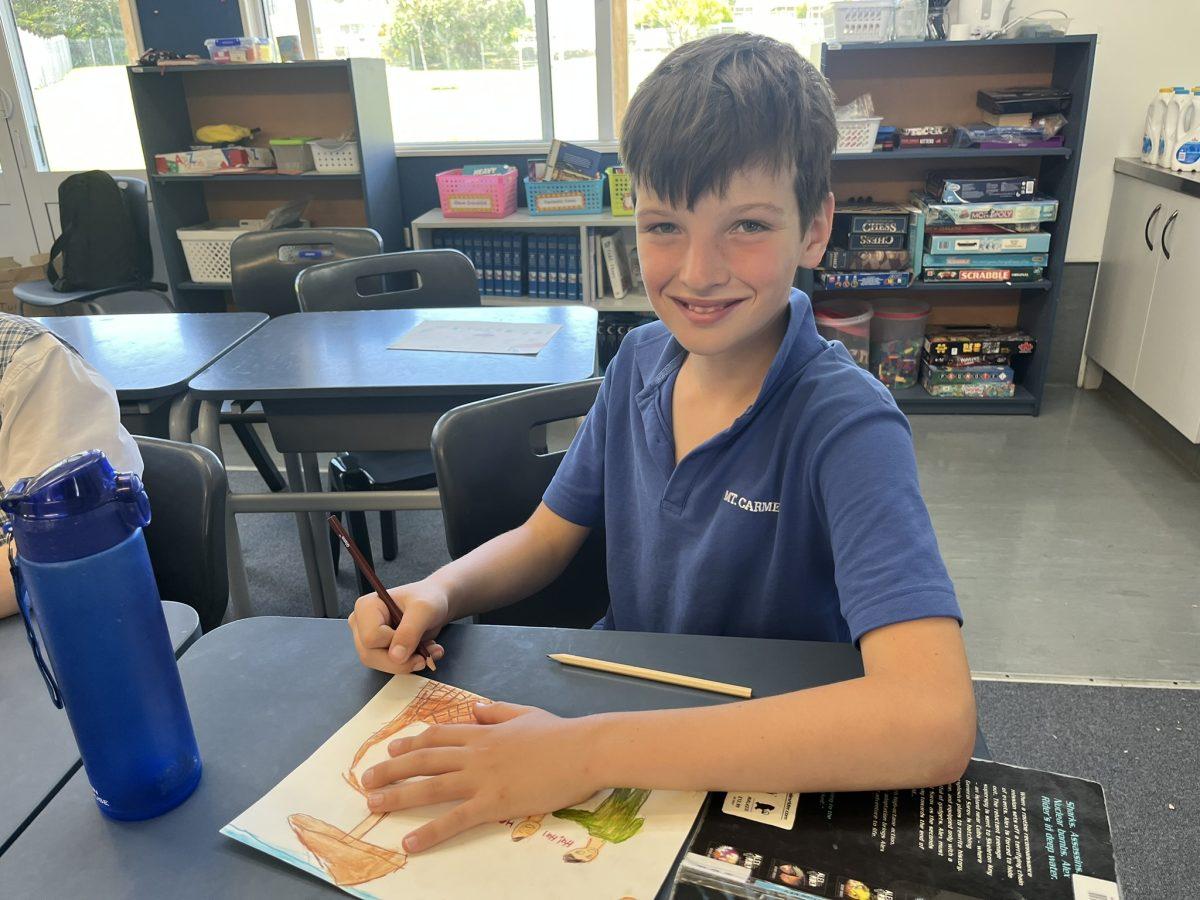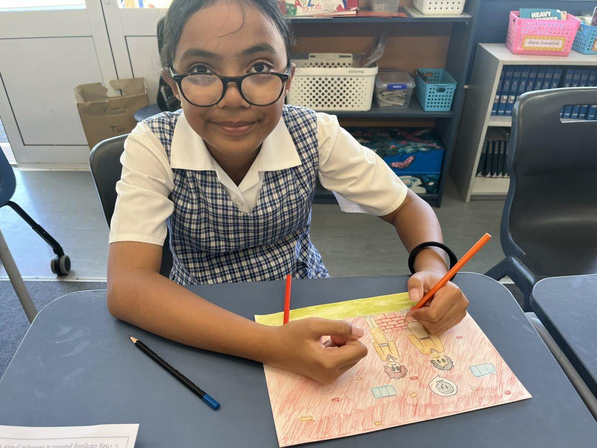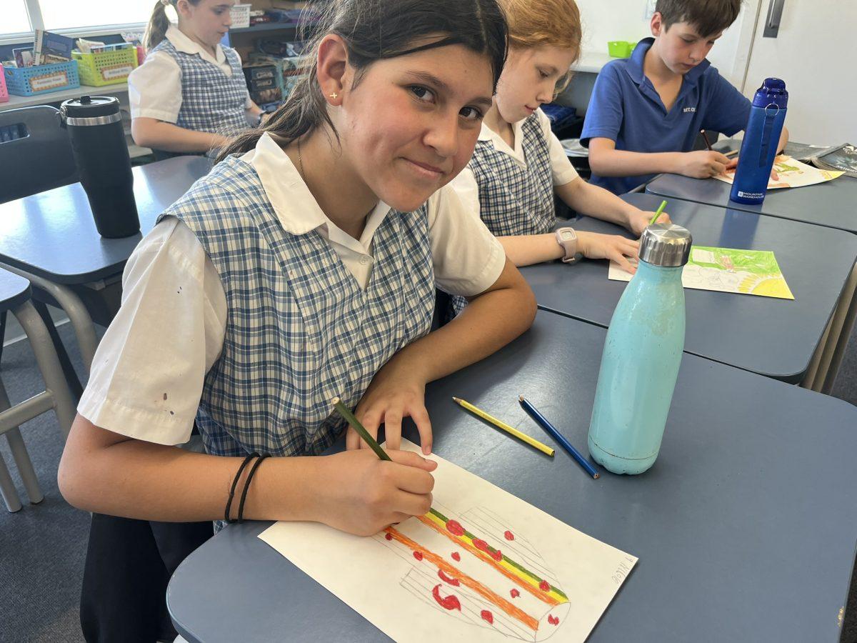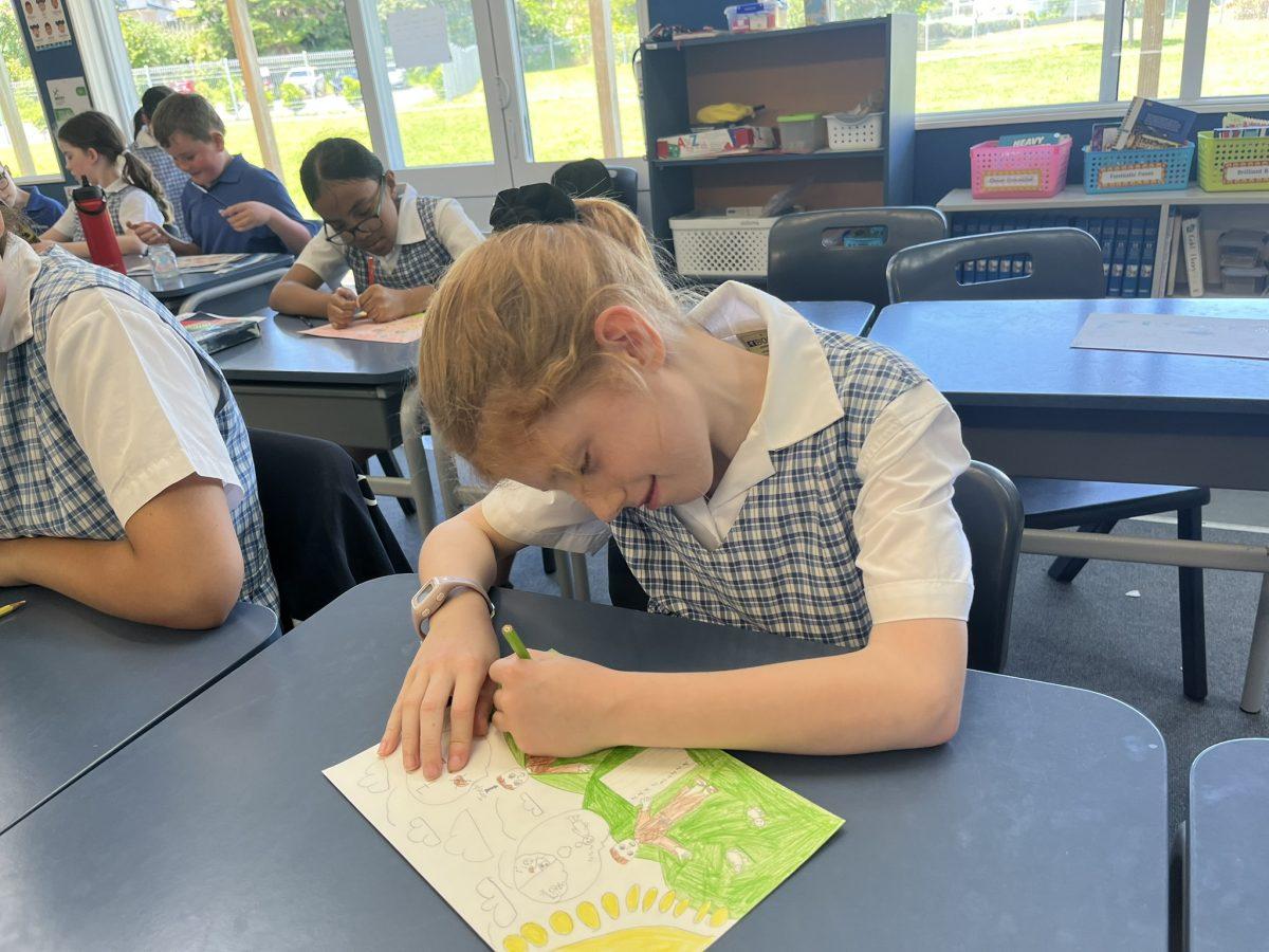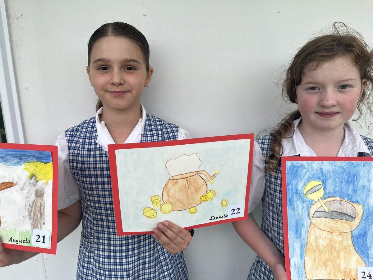 During the Te Rongopai -Good News theme in RE, Tui class explored ancient stories from the Old Testament that Jesus would have learnt as a child. These special stories show us how to be in good relationships with God, ourselves and other people. One of the stories they studied was Joseph and His Brothers. Through this story, the students explored the concepts of peace, jealousy and hatred, and identified how these were shown in the story. They also reflected on how they can show forgiveness themselves and make peace when encountering difficult situations in their lives today. They are reminded that God is always there to support them. To supplement their learning, each member of Tui class was given a scene from the story to illustrate using watercolour pencils. Collectively, their pictures tell the story of Joseph and His Brothers for you to enjoy.