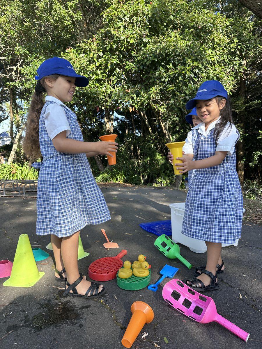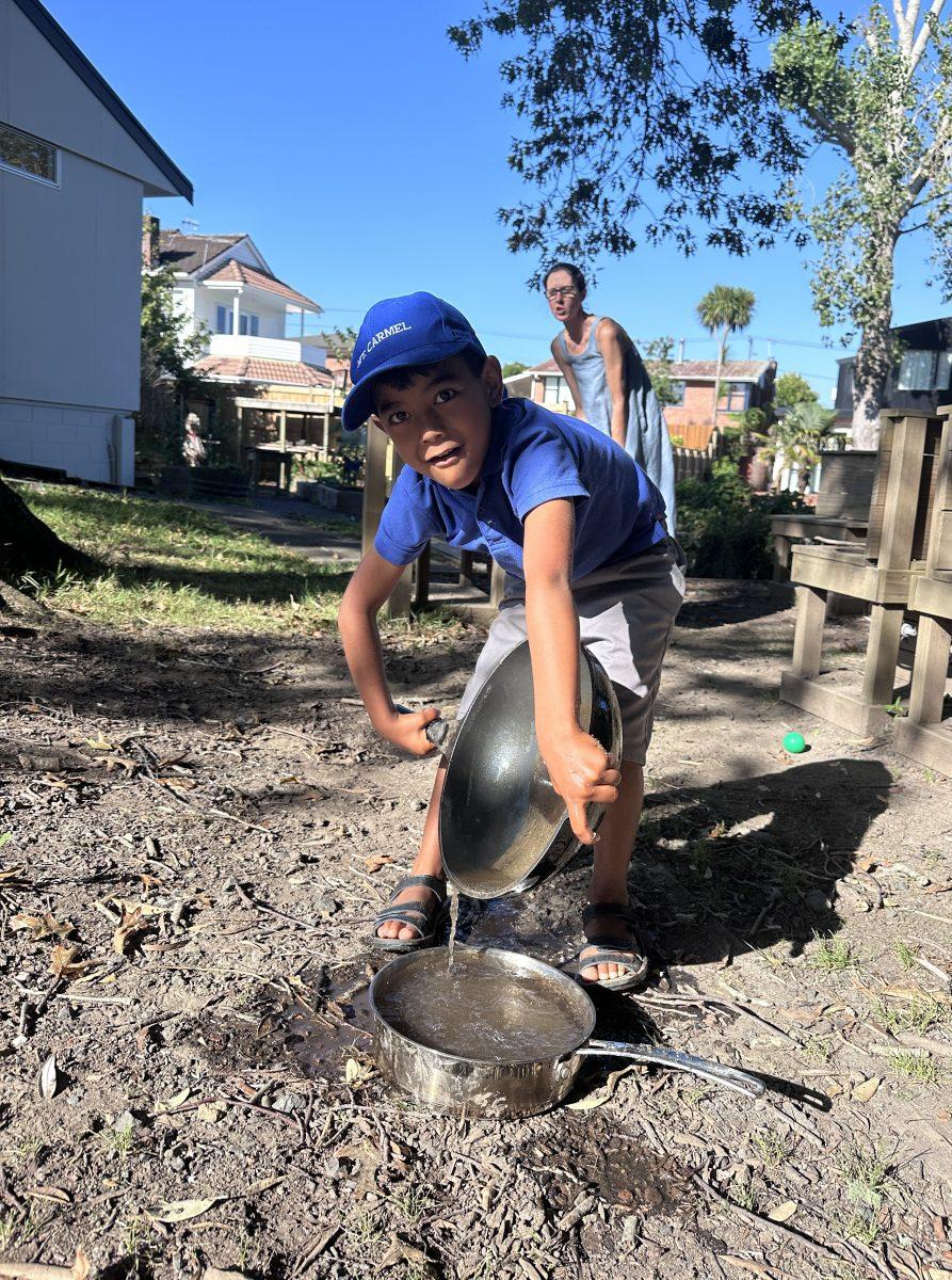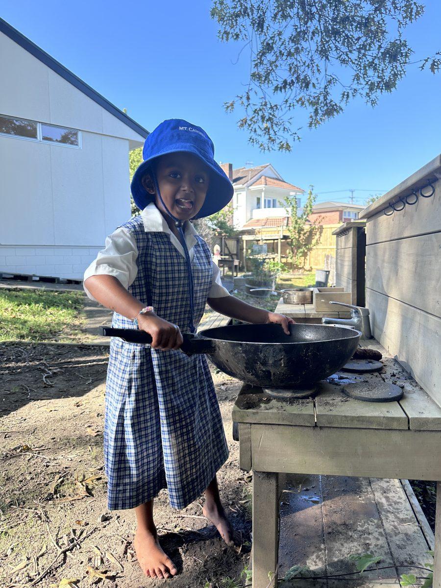 On Wednesday mornings, our Piwakawaka class has Outdoor Learning in the Enchanted Garden. This is a great opportunity to learn through play in the outdoors in our beautiful natural setting. Outdoor Learning covers so many learning areas like oral language, science, maths, health and physical education. This term we have been finding insects under tree roots, role playing restaurant owners in the mud kitchen, and designing our own obstacle courses with PE equipment. We love running, jumping, swinging, balancing, climbing and moving our bodies while we learn. We are so lucky to have our classroom right next door to the Enchanted Garden, and we have been very lucky with good weather so far!