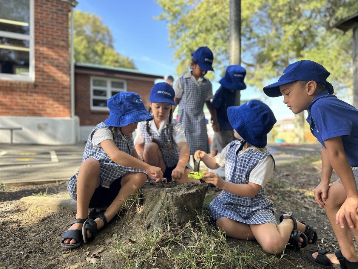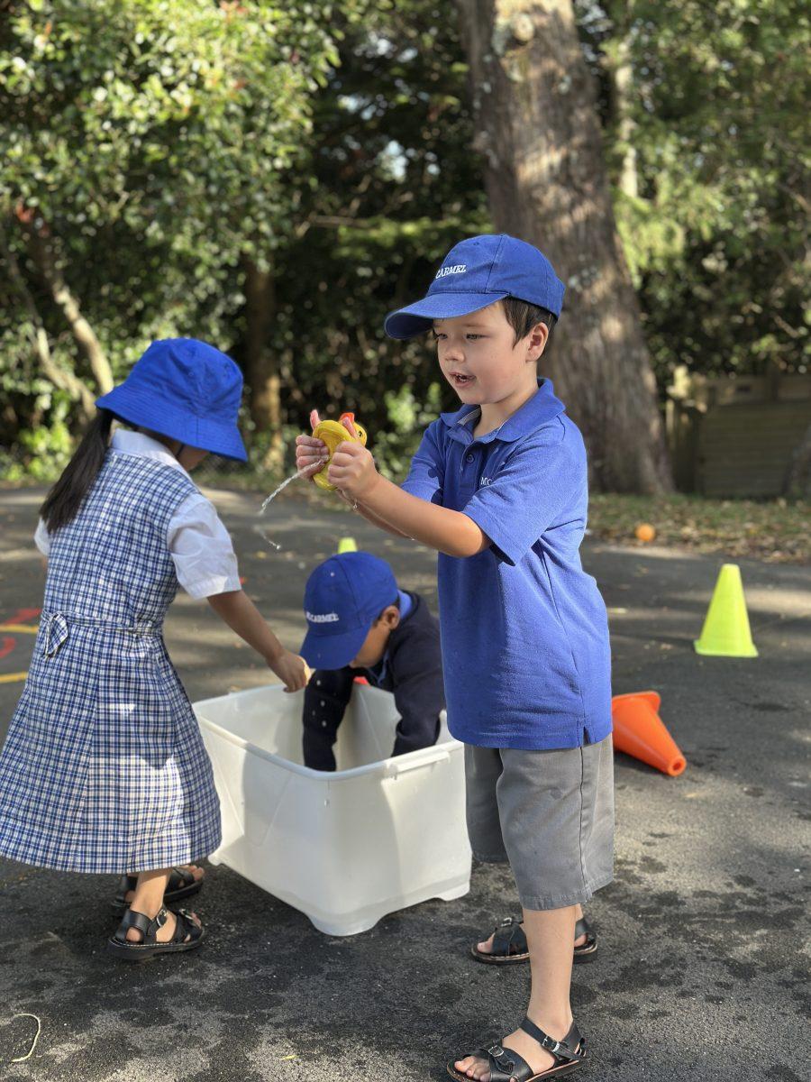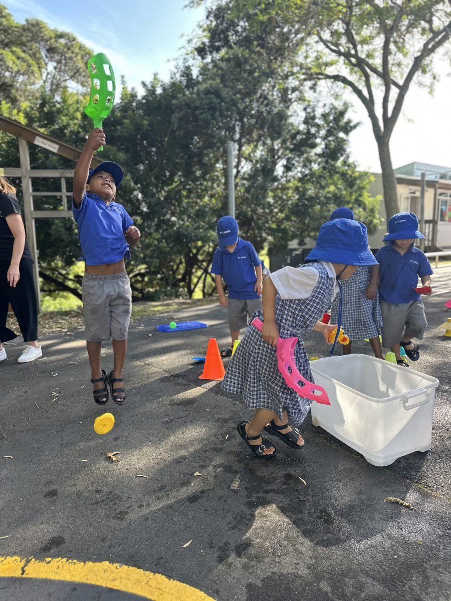 On Wednesday mornings, our Piwakawaka class has Outdoor Learning in the Enchanted Garden. This is a great opportunity to learn through play in the outdoors in our beautiful natural setting. Outdoor Learning covers so many learning areas like oral language, science, maths, health and physical education. This term we have been finding insects under tree roots, role playing restaurant owners in the mud kitchen, and designing our own obstacle courses with PE equipment. We love running, jumping, swinging, balancing, climbing and moving our bodies while we learn. We are so lucky to have our classroom right next door to the Enchanted Garden, and we have been very lucky with good weather so far!