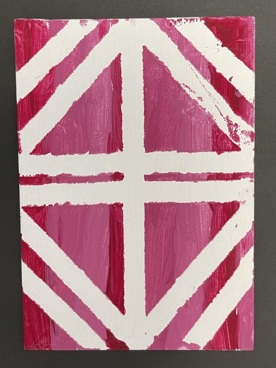 Tui Class are proud to present the geometric designs they have created with paint on canvases. Their designs were inspired by tukutuku panels which are a type of ornamental weaving used to adorn the inside walls of wharenui. After researching different tukutuku patterns, the students chose their favourite one to replicate using masking tape on a canvas board. They then selected a base paint colour and created three different shades. Vertical stripes were then painted on the canvas using the different shades, and then the masking tape carefully removed.